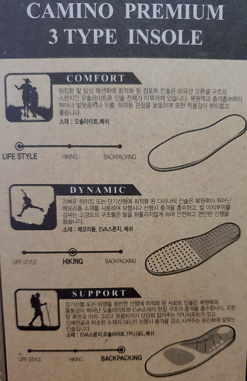 가끔 갈맷길을 걷는데 좋은 깔창을 사용하면 발이 편하다는 말을 듣고 '캠프라인 까미노 컴포트, 다이나믹 인솔'을 구입했다.