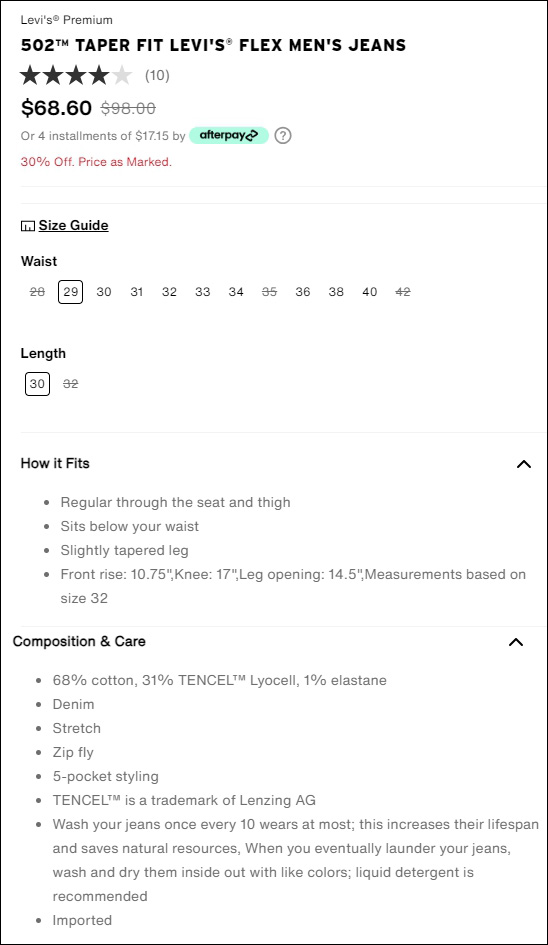 리바이스 미국 공홈에서 501, 502 청바지를 직구했다.