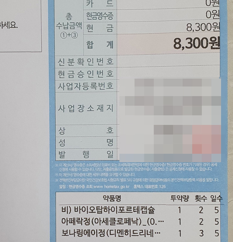 약값은 8,300원이 나왔다.