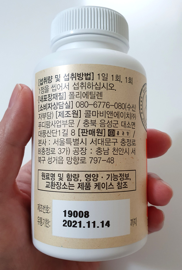 1통에 90정이 들어있으니 3달 정도 먹을 수 있겠다.