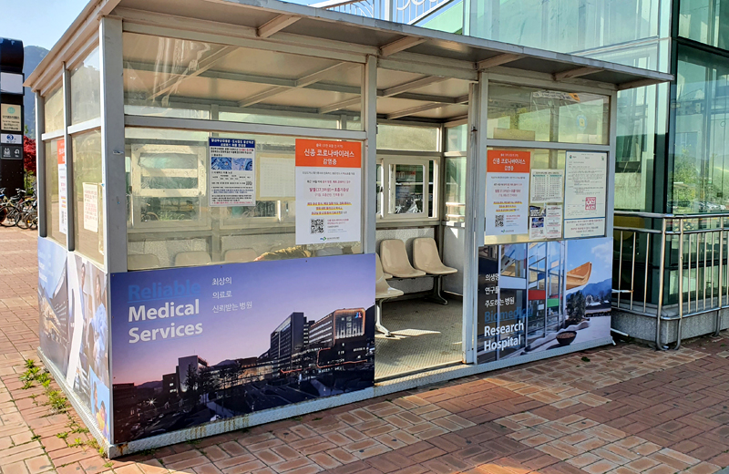육교를 내려와 뒤돌아서면 양산부산대병원 셔틀버스 타는 곳이 바로 보인다.