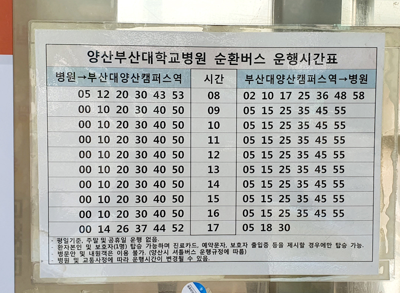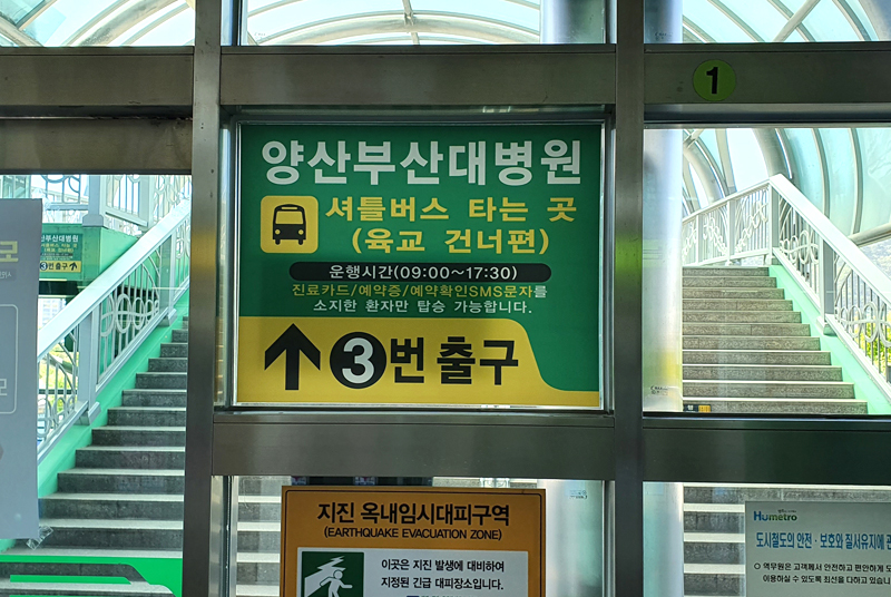 양산부산대학교병원에서 지하철역으로 나가는 막차는 5시 52분이니 늦지 않게 주의하자.